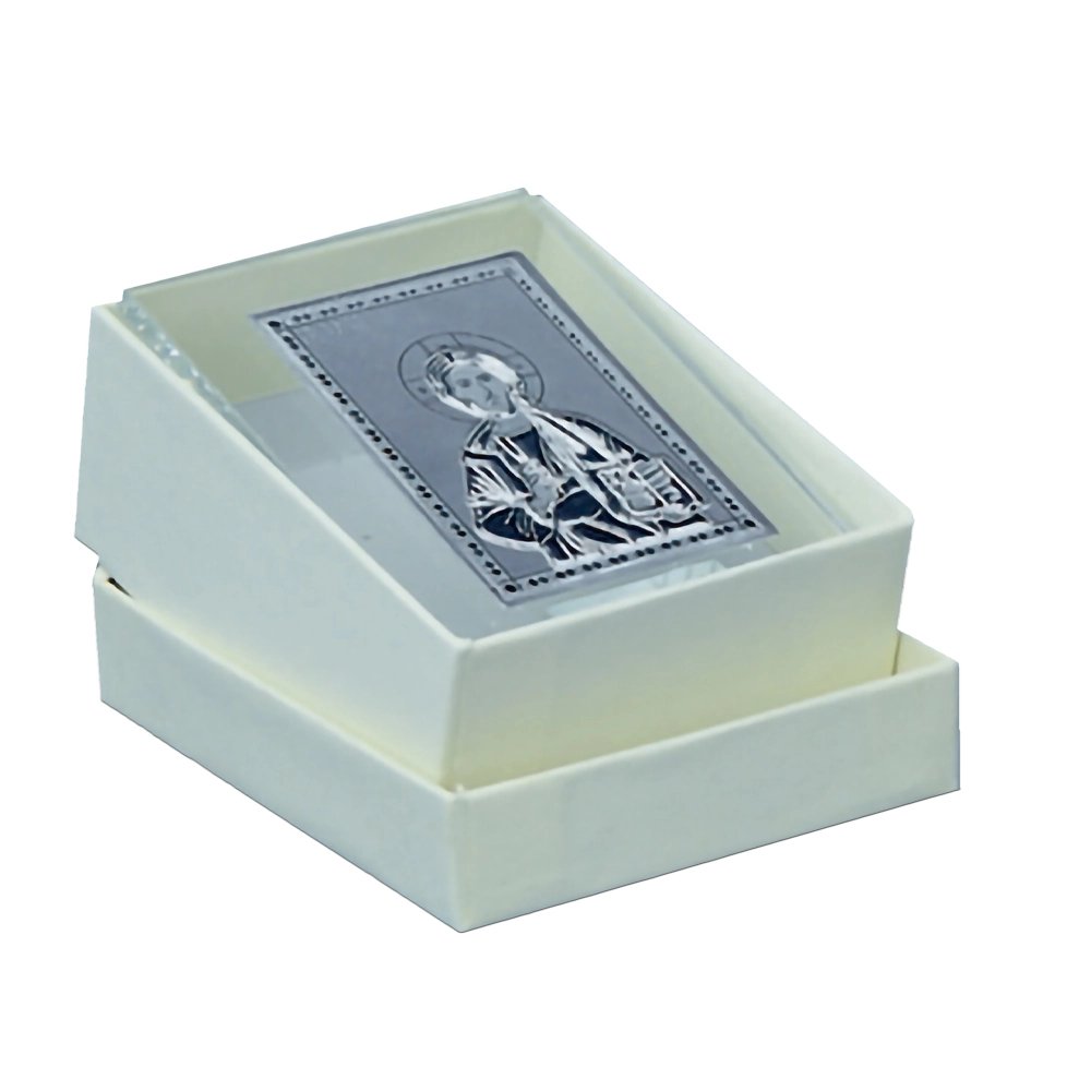 Γυάλινη εικόνα σε κουτάκι. 2 σχέδια μαζί (Παναγία & Χριστός). Διαστάσεις 8*6εκ.