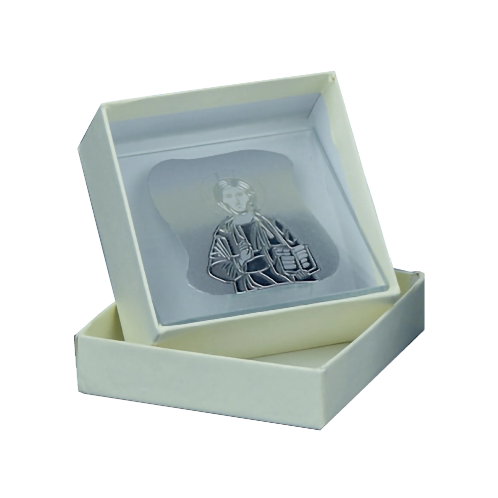 Γυάλινη εικόνα σε κουτάκι. 2 σχέδια μαζί (Παναγία & Χριστός). Διαστάσεις 7*7εκ.