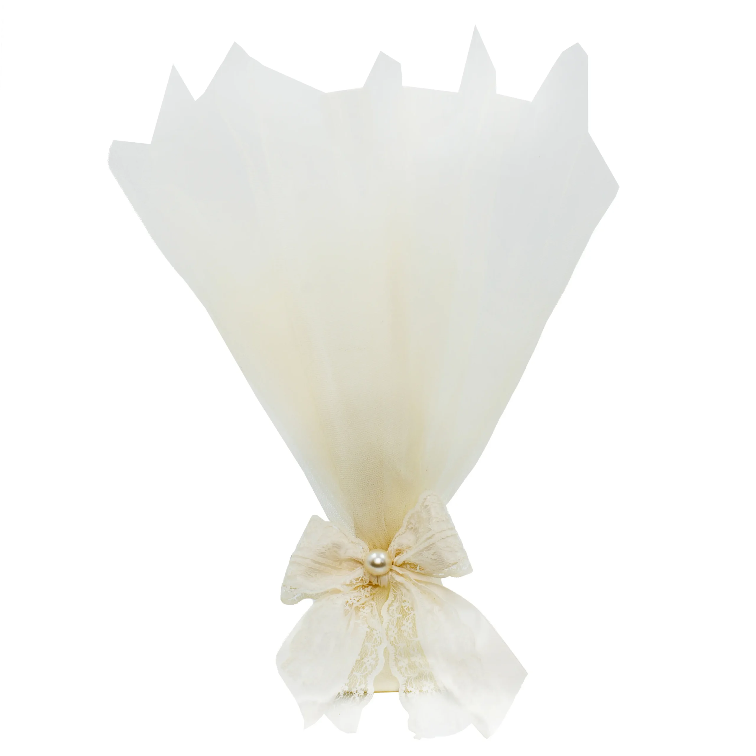 Μπομπονιέρα Τούλι Γαλλικό Εκρού 2 τμχ.(50Χ60εκ.), Φιόγκο Σατέν & Δανδέλα & Μισή Πέρλα
