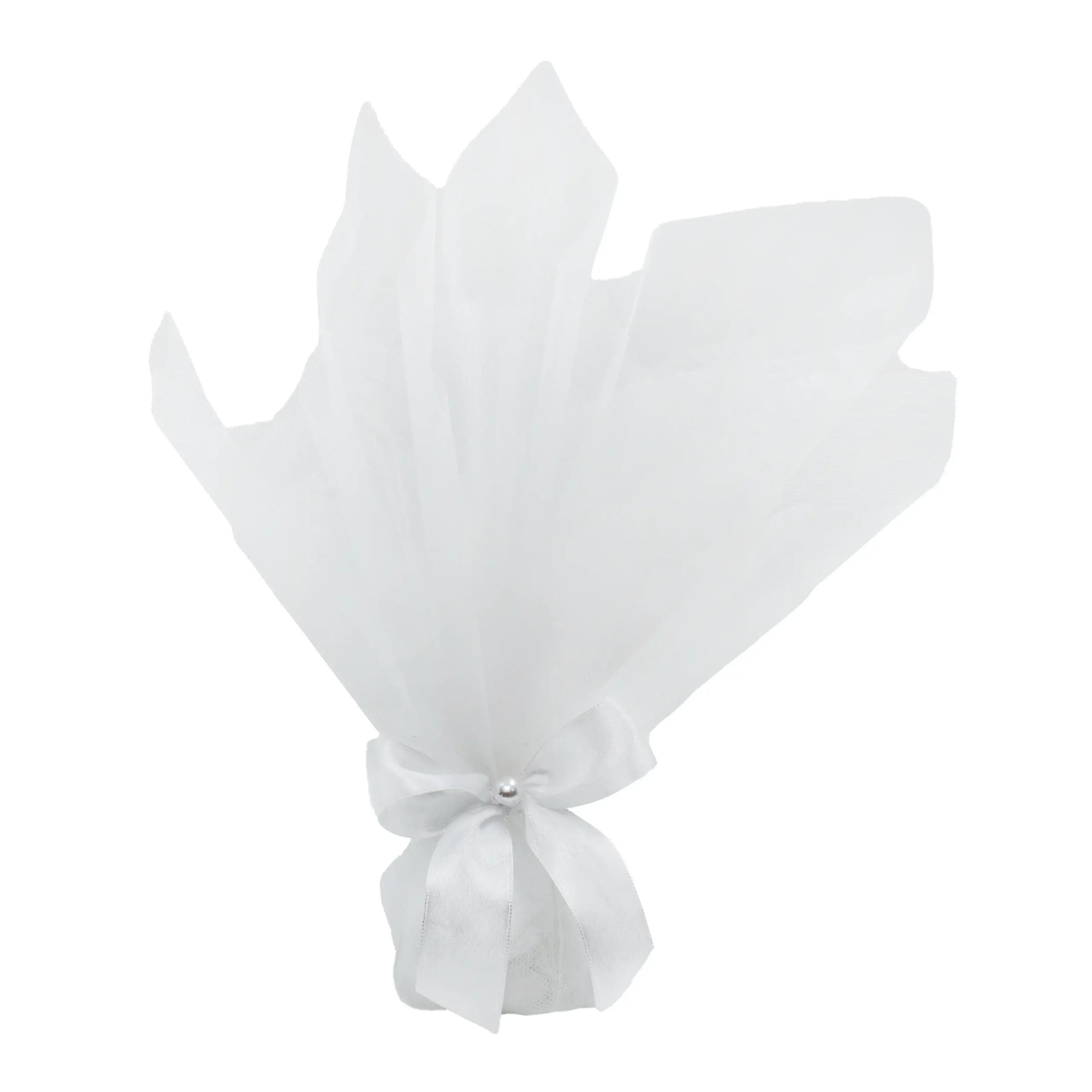 Μπομπονιέρα Τούλι Οργάντζα Λευκό 2τμχ.(40εκ.) Με Φιόγκο Σατέν & μισή πέρλα.