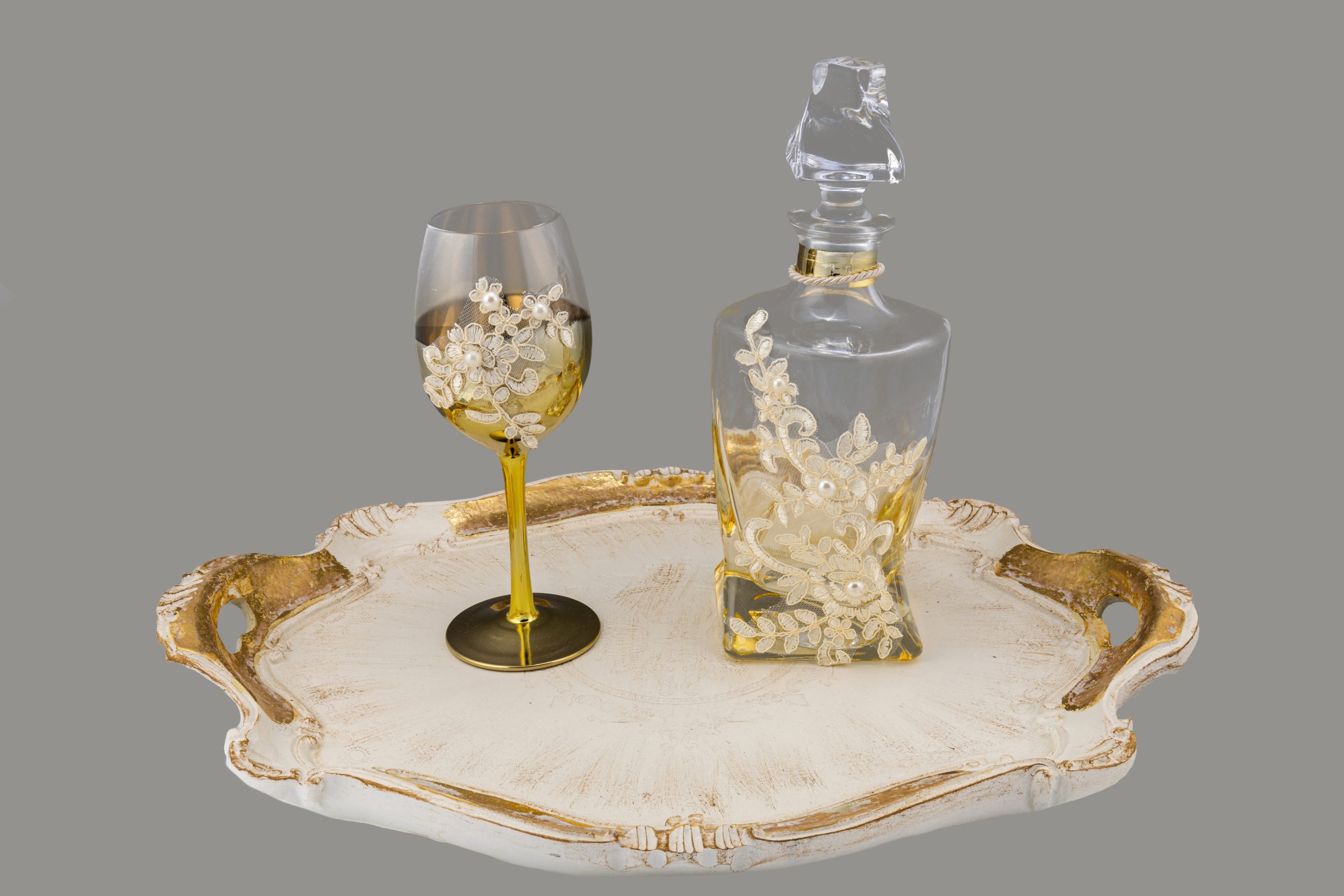 Καράφα  διάφανη-χρυσή με μοτίφ δαντέλα.